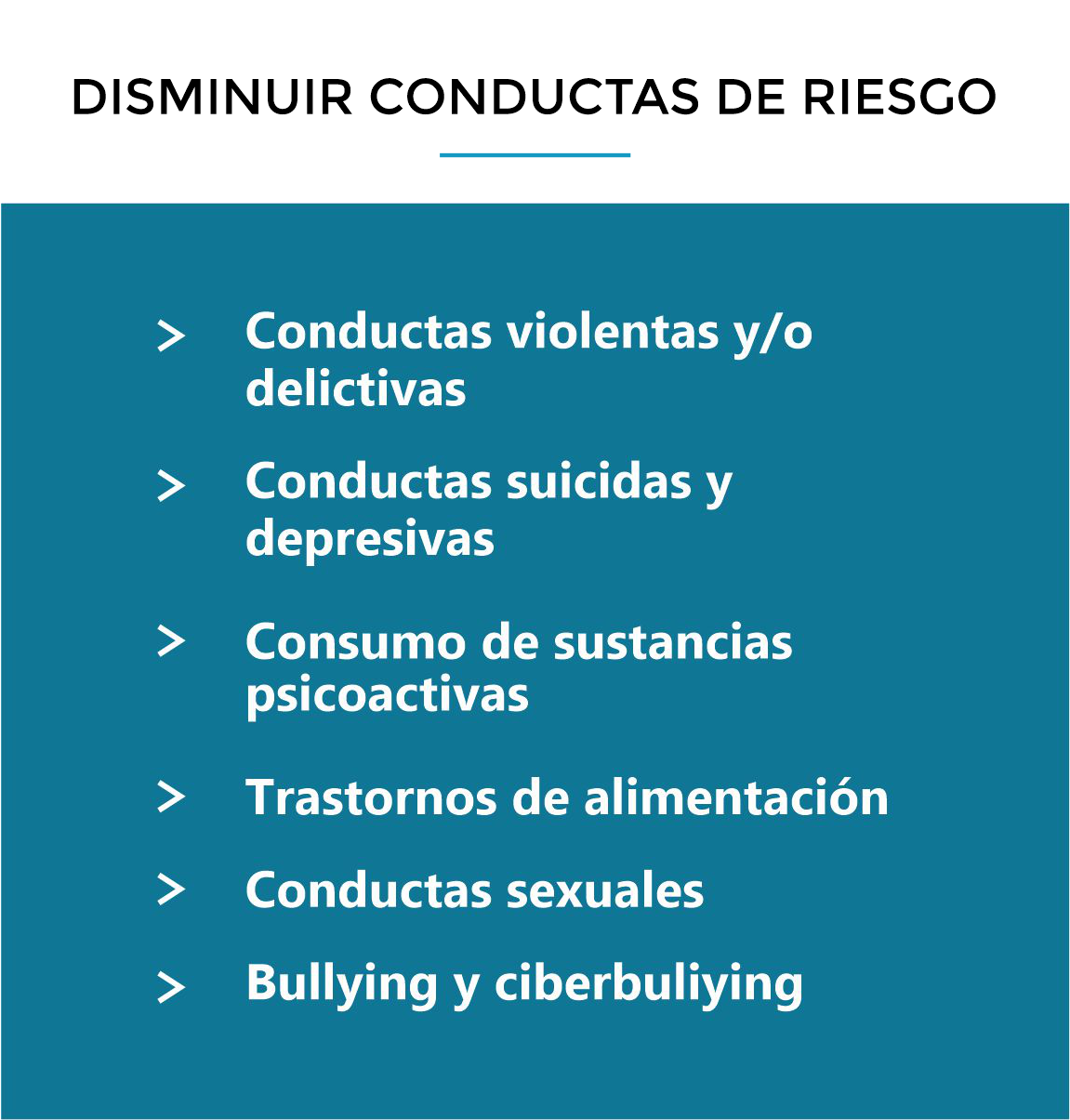 Potenciar el desarrollo de competencias emocionales para prevenir y mitigar conductas de riesgo, generar mayor bienestar social y mejorar la calidad de vida de nuestros niños, niñas y adolescentes. Nuestra misión tiene alcance en tres entornos: